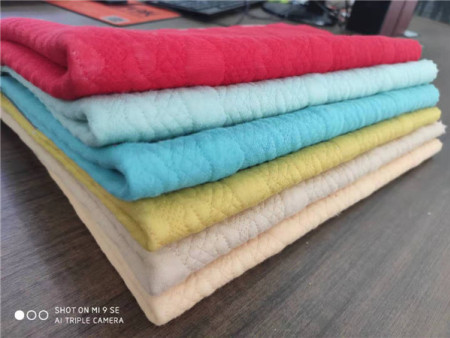 當(dāng)然,防風(fēng)絨單面也不僅僅只能對(duì)復(fù),也可以嘗試不同組合(如下圖),與銀狐絨,澳粒絨,牛奶絲等不同的復(fù)合底布面料組合成不同觸感的面料,根據(jù)你所需的克重自行組合。