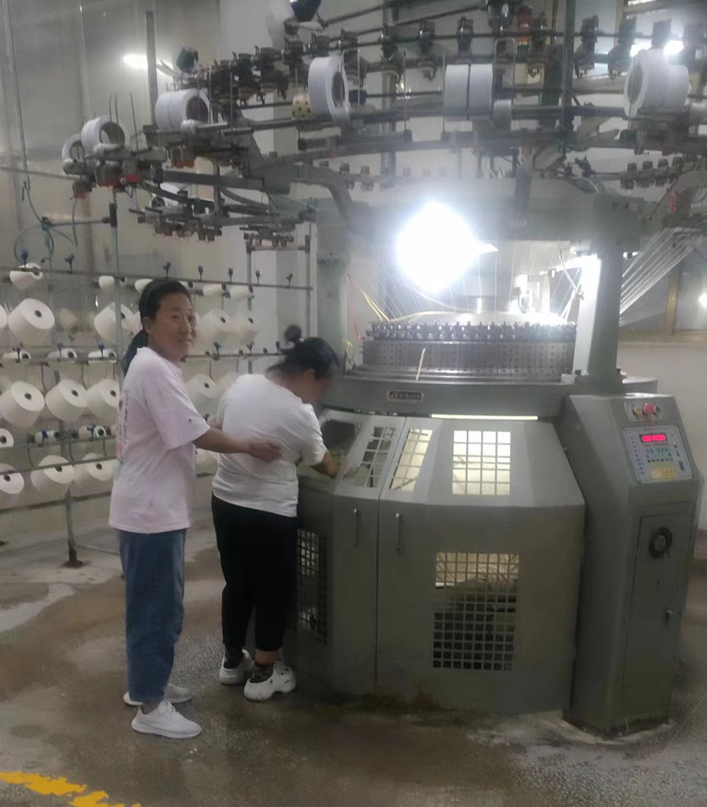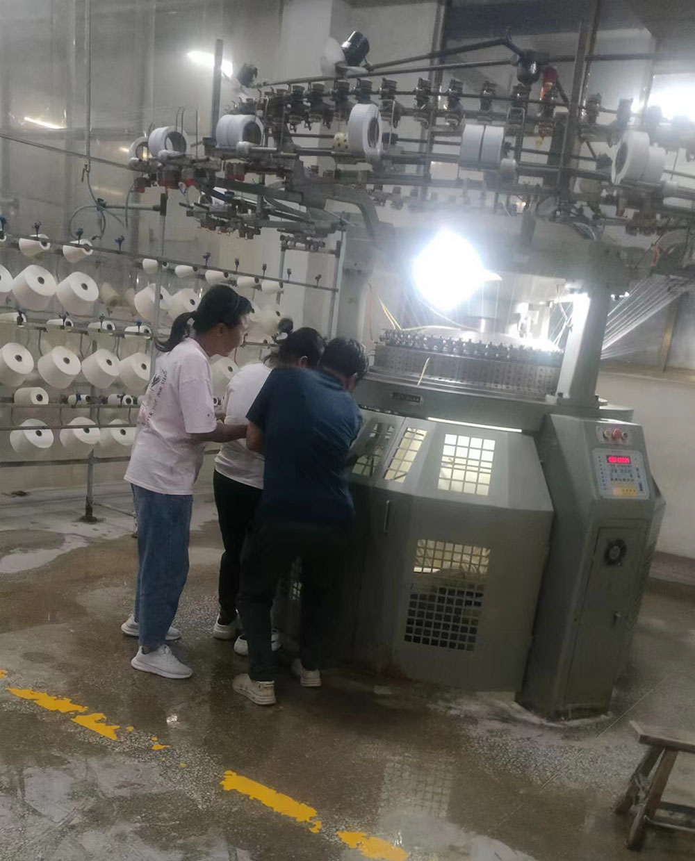 首先,模擬車間生產(chǎn)現(xiàn)場(chǎng)出現(xiàn)機(jī)械傷害事故,有員工被卷入大圓機(jī)中受傷,馬上啟動(dòng)應(yīng)急預(yù)案。各應(yīng)急小組緊張地投入到應(yīng)急救援工作之中,搶救傷員、救護(hù)包扎、緊急聯(lián)絡(luò),各項(xiàng)工作有序展開。救援小組立即關(guān)停機(jī)器,將受傷員工從機(jī)器中搶救出來。救護(hù)小組給傷員檢查傷情,包扎止血。聯(lián)絡(luò)小組打120請(qǐng)求派救護(hù)車緊急救護(hù),受傷員工得到了及時(shí)救治。